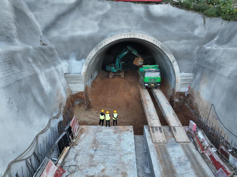 全长1.7公里的杨岭隧道是本项目的关键控制性工程,为双洞分离式的长隧道。其地质主要为黄土、中砂和卵石,全部为V级围岩,自身稳定性差,同时进出口埋深小,存在高陡边坡及轻微湿陷性黄土,不良地质及施工条件给项目建设带来了巨大的挑战。为破解项目施工难题,项目部加强技术攻关,同时加强协调各方力量聚力攻坚,施工中采用地质雷达、超前水平钻探等先进科学探测手段,实时准确掌握掌子面前方地质状态。同时,开展洞内监控量测及地表观测,及时调整工艺工法,采用机械开挖的开挖方式,稳步推进,尽可能减少对周边环境的影响,树立“质量管控为核心、安全生产为底线”的施工理念,确保项目稳步推进。