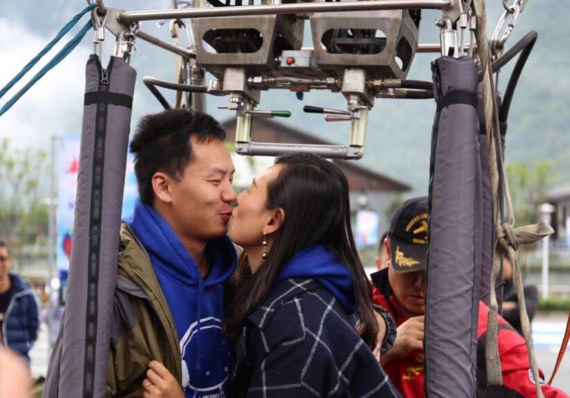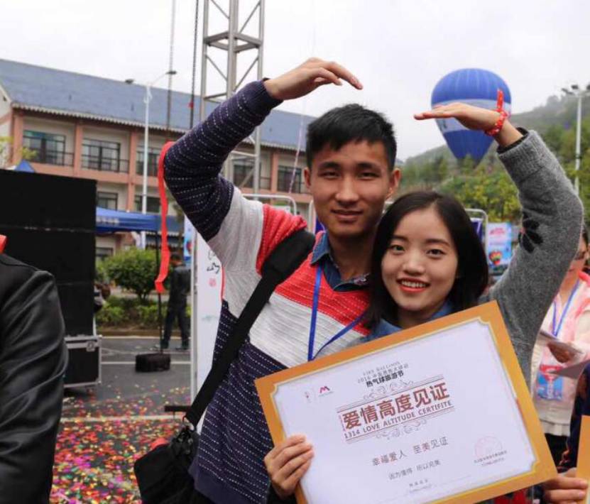 新人在乘坐完热气球后,会获赠一张“爱情高度见证”证书(齐兆庆 摄)