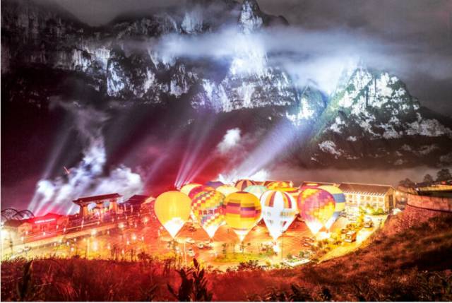 随着夜幕降临,国内36位顶级运动员驾驶热气球穿越雄奇险峻的恩施大峡谷。15只色彩斑斓的热气球缓缓升空,随动感音乐节拍忽明忽暗、上下起舞。游客们尽情地在恩施大峡谷赏神奇风景,听大地飞歌,品土家美食,探土家文化。