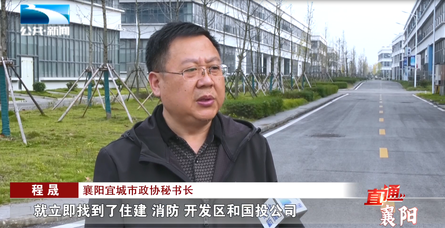 襄阳宜城市政协秘书长 程晟:“我们知道以后,就立即找到了住建、消防、开发区和国投公司,实地来进行查看,就相关问题进行讨论,最终在不影响消防和墙体安全的情况下,把消防设施通道打开,确保当时的设备在8月份安全进场。”