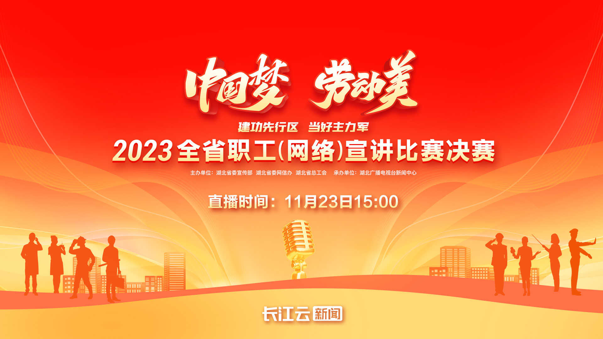 11月23日下午15:00,省职工(网络)宣讲比赛决赛精彩启幕!湖北广电长江云、湖北之声视频号、湖北省总工会视频号等平台同步进行网络直播。欢迎广大网友通过直播互动为选手加油、打CALL!