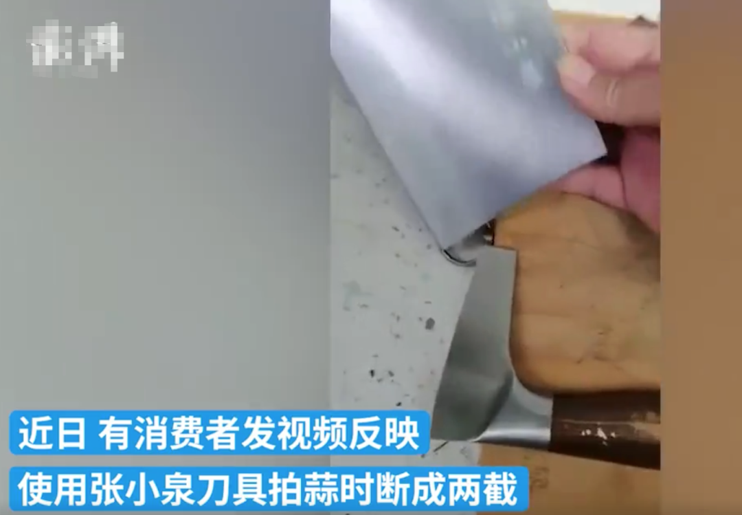 今年10月,有消费者发视频反映,用张小泉刀具拍蒜断成两截。张小泉电商官方旗舰店客服表示:“张小泉的常规刀具是可以用来拍大蒜等食材的,不过不建议使用菜刀去大力横拍大蒜,建议消费者尽量做到专刀专用。”