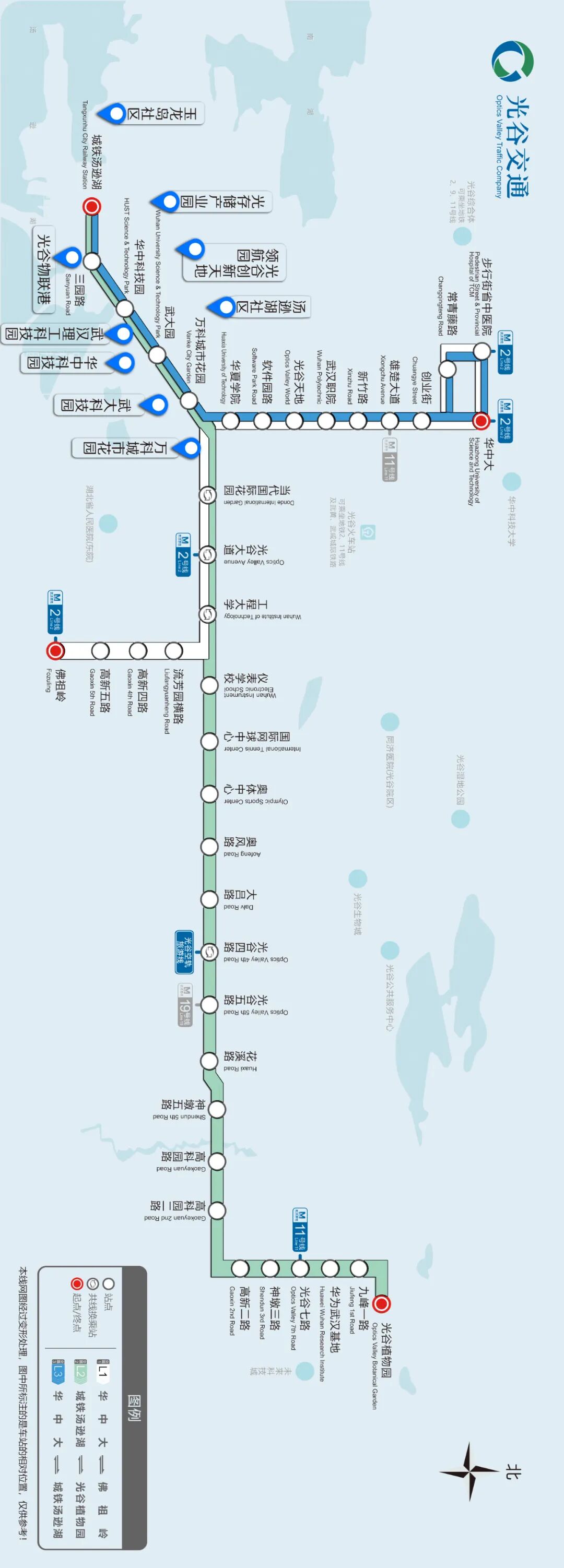 同时,L3还可在华中大站、光谷步行街省中医院站,分别与地铁2号线快速换乘,大学园路沿线居民可乘坐轨道交通通达武汉三镇。