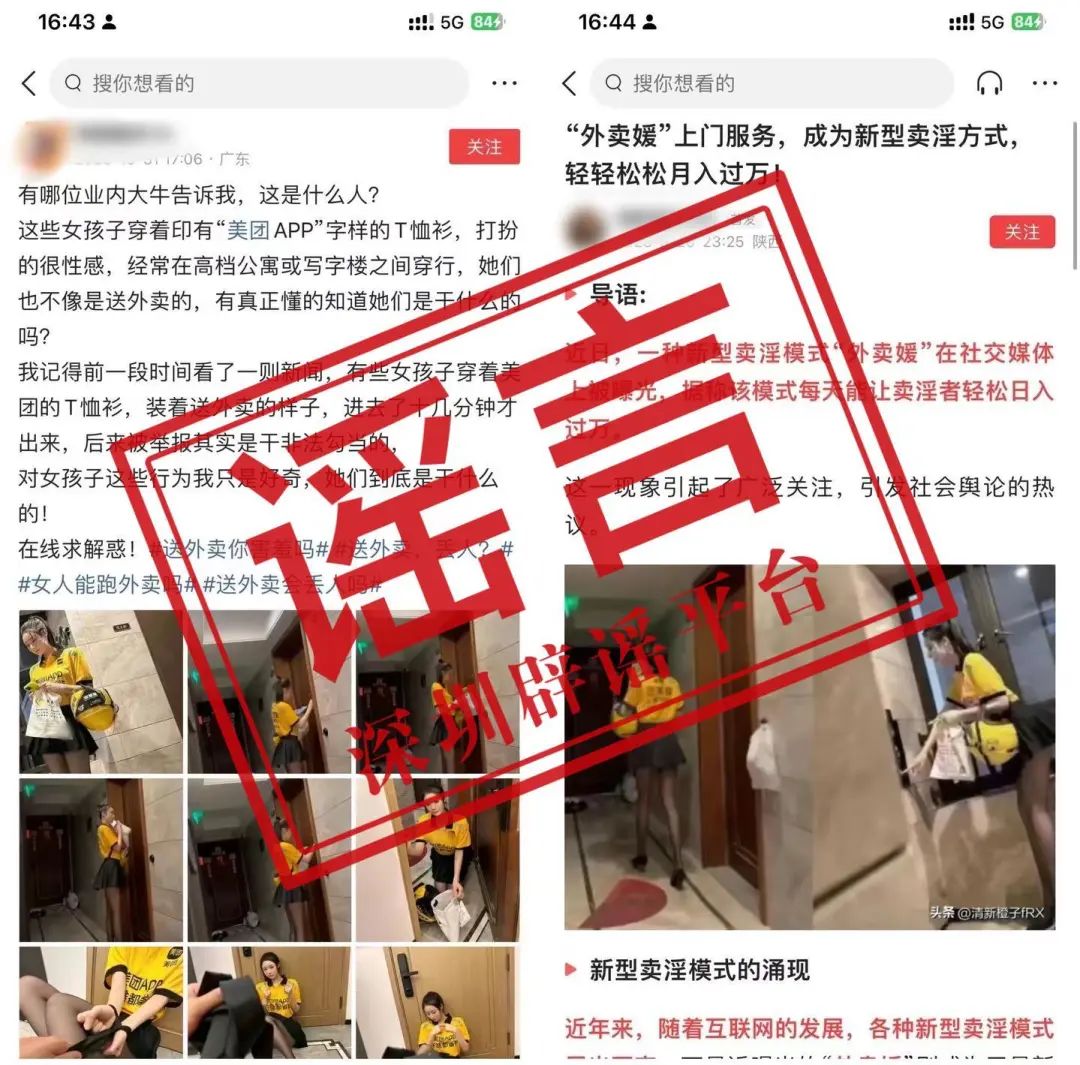 11月初,该账号拍摄制作的多组女性身着外卖工服、丝袜或短裙送外卖的擦边视频及照片在网上流传,被大量自媒体解读为“新型卖淫模式”。这些视频和照片也成为网上数千条涉性谣言的素材,有人将海外某订餐平台的高价菜单页面,与“小逗逗”摆拍的身穿外卖工服涉黄擦边照片拼凑在一起,通过社交软件进行转发扩散。该信息被相关媒体关注后,一度冲上多个平台热搜。海南琼中警方介入调查后,于11月4日发布通报,称“外卖1400元牛杂汤提供非法服务”为不实信息。