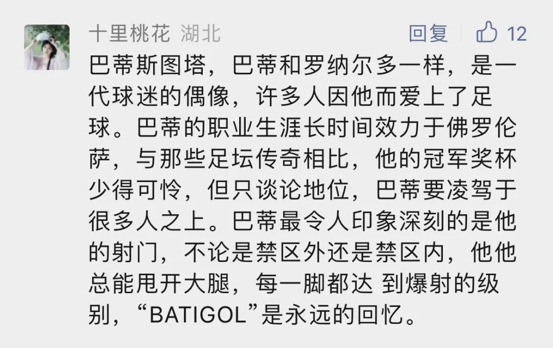 巴乔和巴蒂两人都是20世纪90年代意甲赛场上标志性人物,有人喜欢巴乔的忧郁,也有人爱巴蒂场上的霸气。因为巴蒂在绿茵场上总是激情四射,他那势大力沉的劲爆射门,令对方门将心惊胆寒,令球迷们拍案叫绝,所以巴蒂被中国球迷称之为“战神”。