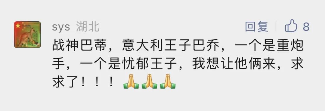 能在家门口见到这么多位足坛传奇,令中国球迷激动不已,纷纷留言,深情表白。有怀念远去的球星、有期待久别的重逢、有感慨岁月的变迁、有感伤青春的流逝……