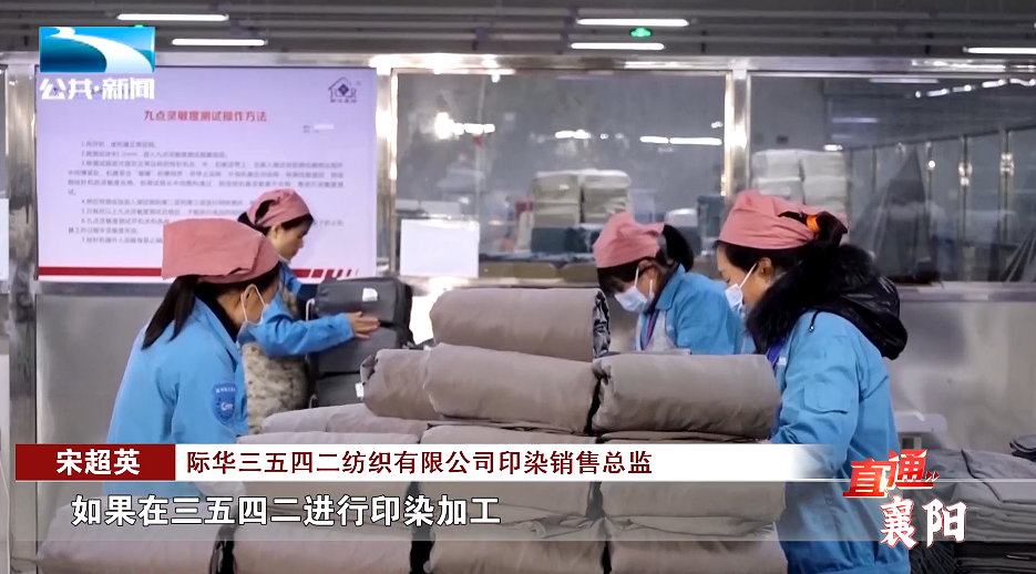 际华三五四二纺织有限公司印染销售总监 宋超英:“我们对襄阳市地方的纺织行业也有拉动和提升的作用,如果在三五四二进行印染加工,它的运输成本最少降低2到3毛钱,它的生产交货期最少要提前一个星期时间。”