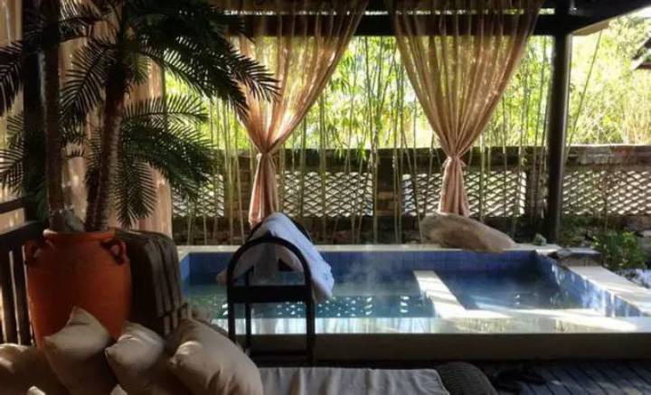 具东南亚巴厘岛风格的室内外温泉,格调新颖,恬静幽雅,40多种温泉泡汤池依据地势高低起伏而设,在自然山脊中错落分布,山脊各温泉池与山底共同构筑成远近高低各不相同的景观