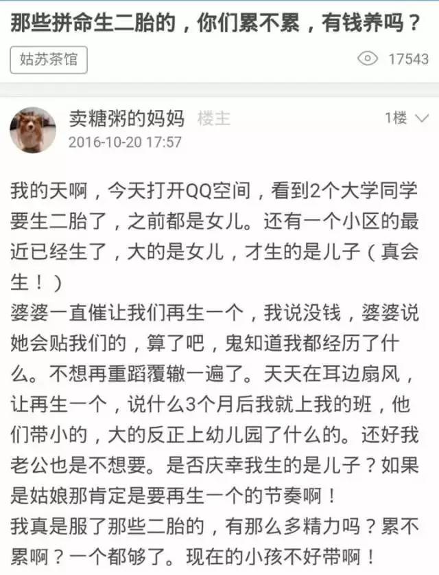 “那些拼命生二胎的,你们累不累,有钱养吗?”