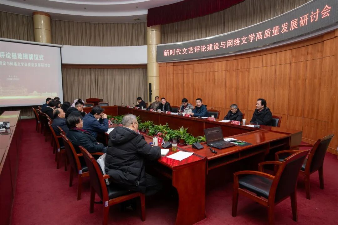 揭牌仪式后,基地邀请相关专家学者举办了新时代文艺评论建设与网络文学高质量发展研讨会。与会专家基于跨学科融合和新时代新文科建设的视角,从网络文学的发展历程和网络文艺评论现状切入,围绕网络文艺和网络文学的海外传播和文化交流、党的文艺政策对网络文学创作题材的重大影响、网络文学改编和地域样本研究等问题作了深入探讨交流,对推动新时代网络文艺的高质量发展提供了很多有价值的建议和路径探索。