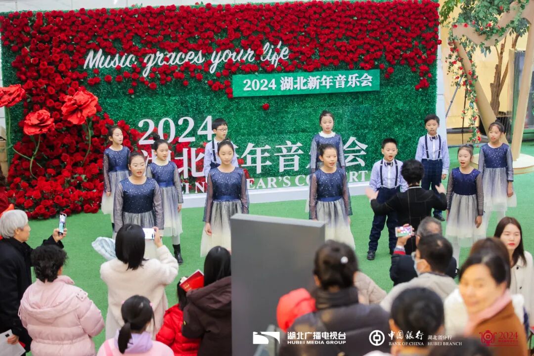 音乐会开始前,湖北少儿广播合唱团的孩子们身穿节日盛装在陈丽丽老师、李姿静老师的带领下用清脆而又热烈的歌声唱出欢快的《牧童之歌》和互动感极强的《全世界的小朋友笑起来》。一句“全世界小朋友笑起来”震撼着在场每个人的内心,也为稍后盛大的湖北新年音乐会拉开了华丽序幕。