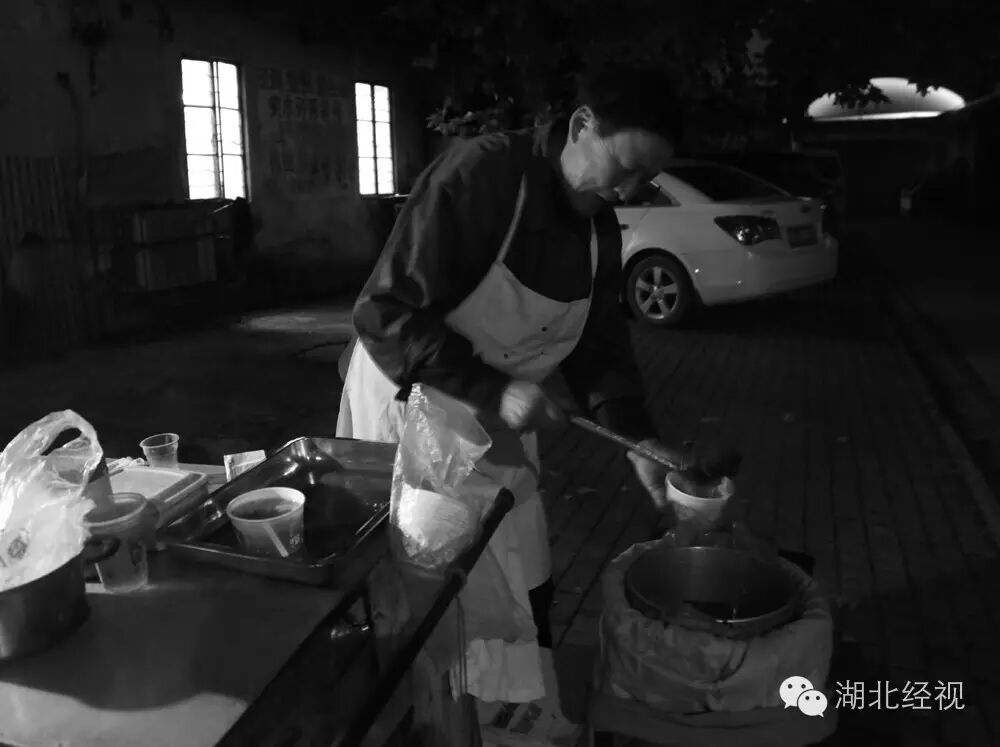 这件事并没有让他逃避以后的生活,为了养活家人和孩子,1980年,他决定到孝感米酒馆工作,学酿米酒,做桂花糊,一干就是三年。功夫学到家了,83年,他来到了武汉,开始摆摊卖桂花糊的生涯。