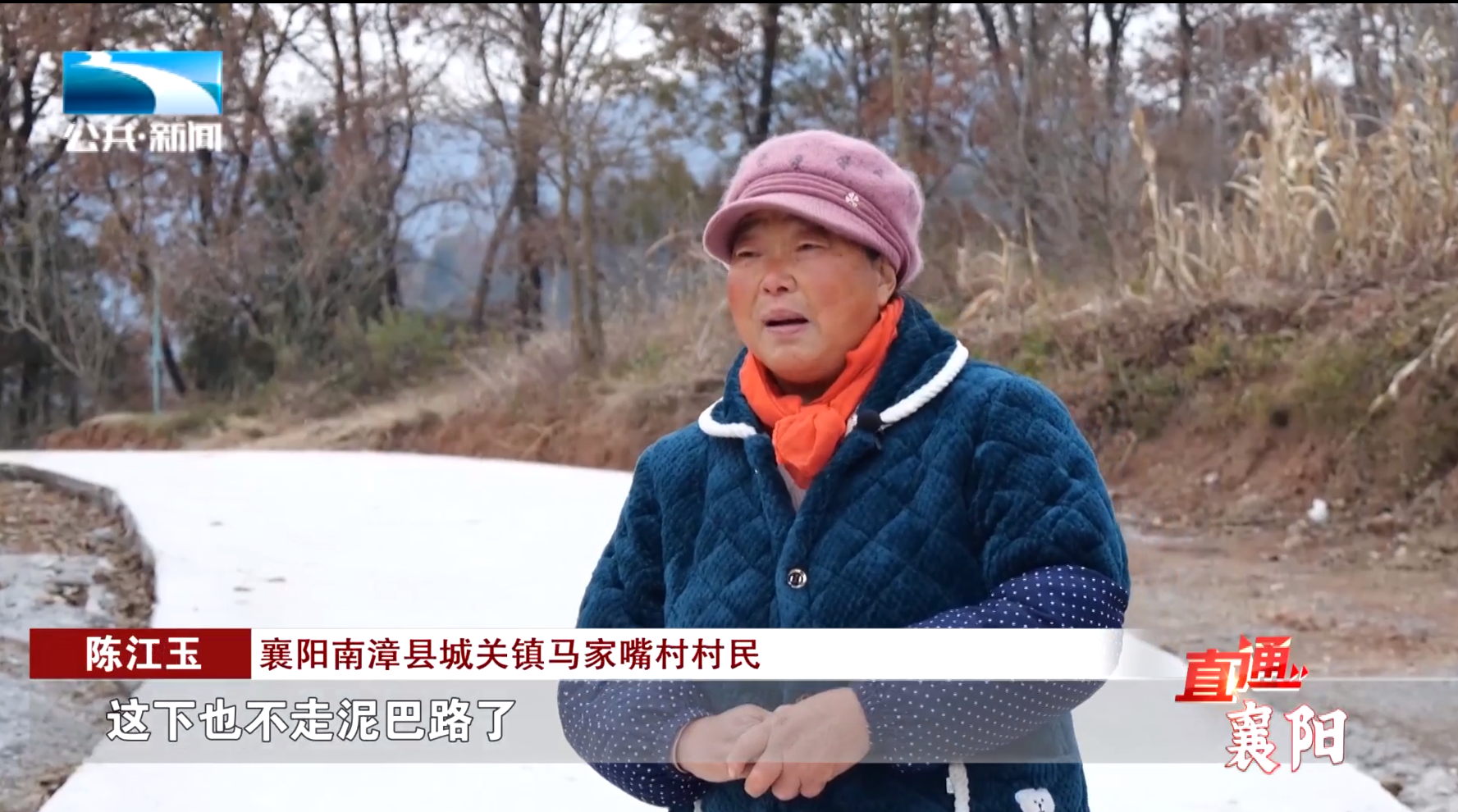 襄阳南漳县城关镇马家嘴村村民 陈江玉:“这下也不走泥巴路了,也不摔跤了,让车也不怕了,个个心里都高兴。”