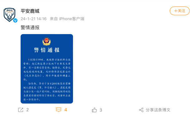 平安鹿城微博 2024-01-21 19:02:49