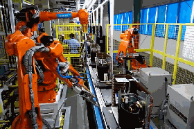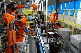 2015年,随着与安川公司的合作,美的正式开启“智慧家居+智能制造”的“双智”战略。当年,美的武汉工厂就投入3亿元资金对生产线实行智能化改造,引进200余台机器人。凭借全球智能化率最高的空调外机柔性生产线、全球首条连接管自动化生产线,管路加工及钣金车间、注塑车间实现区域无人化,美的武汉工厂在今年通过工信部2016年智能制造试点示范公示,成为空调制造行业惟一“范本”。