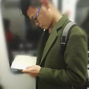 不算拥挤的车厢里,我们从头至尾来回走动,只发现3个人捧着纸质书本在阅读: