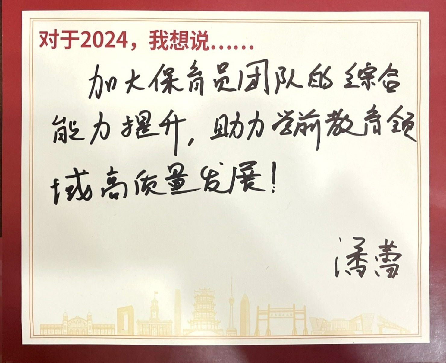 “2024年十大民生项目清单中,第一项就是着力实现幼有善育,并提出全省将新增3岁以下婴幼儿托位4.5万个,新增公办幼儿园学位1.5万个,作为一名幼教工作者,感觉接下来的工作更有底气了。”