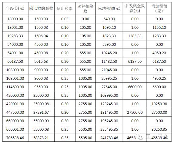 根据国家有关规定,在一个纳税年度内,对每一个纳税人,年终奖的计税办法只允许采用一次。最郁闷的莫过于老板一高兴,年终奖多发一元钱,但结果拿到手的奖金却少了一千多元。年终奖在1.8万、5.4万、10.8万、42万、66万和96万这几个临界点,会出现年终奖多发1元,税后收入反而减少的情况。