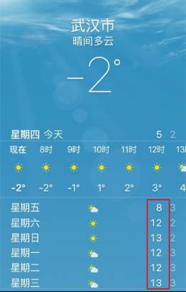 气象专家表示,这一轮寒潮来去都算比较快。后天,湖北省将出现晴天,在阳光的照耀下,全省最高气温将有5℃左右的明显回升。武汉这个周末最高温就能回到10℃以上了。你感受一下这个突变的画风: