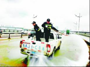 截至23号上午11点,全市共出动2400余人,车辆300余台,撒盐121.5吨;市路桥收费中心出动人员65人,在全市9座跨江桥梁撒盐30吨。