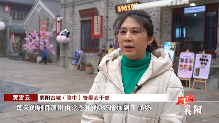 襄阳古城(隆中)管委会干部 黄雪云:“春节期间我们管家巷从2月8日到17日,每天的剧目演出由常态化的9场增加到16场。为了凸显龙年的特色,我们定制了专门的龙年花灯,为大家展现襄阳年味。”