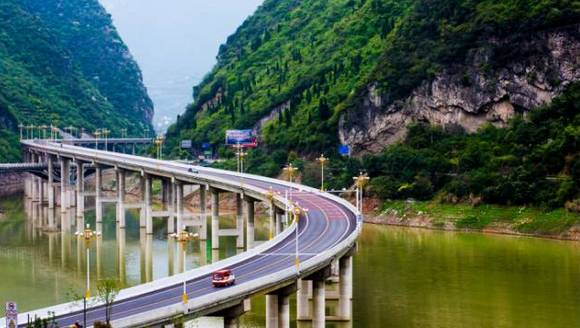 中国新开通的7英里公路建在河谷中间。