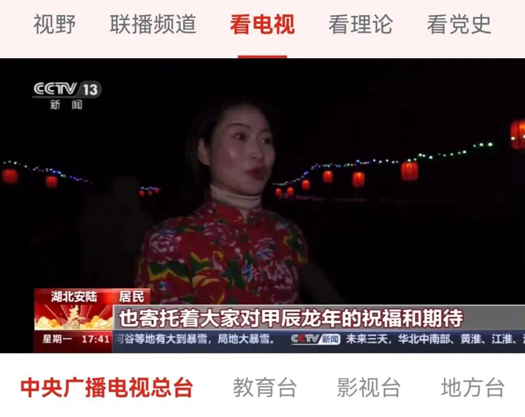 假日期间,安陆九次登上中央电视台,盛世闻樱景区龙年烟花秀相继在《新闻联播》《新闻直播间》《中国新闻》等栏目中播出。