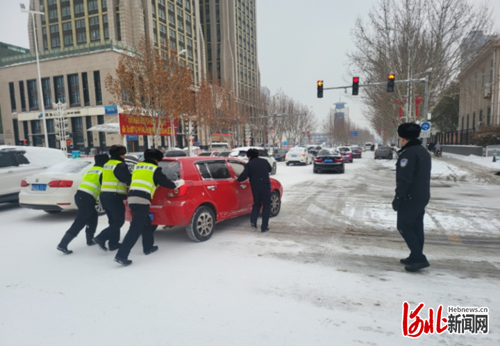 河北新闻网讯(燕赵都市报纵览新闻程军 通讯员苗文金)自2月20日至21日,邯郸市出现大范围降雪天气,气温骤降,道路积雪结冰现象明显,给群众出行带来不便。邯郸市公安局交巡警支队第一时间启动恶劣天气应急响应机制,全警全力迅速开展交通疏导、巡逻防控、排查隐患、应急救援、服务群众和清雪保畅工作,最大限度预防和减少因恶劣天气引发的恶性交通事故和严重交通拥堵,确保恶劣天气下道路交通安全和群众出行安全。