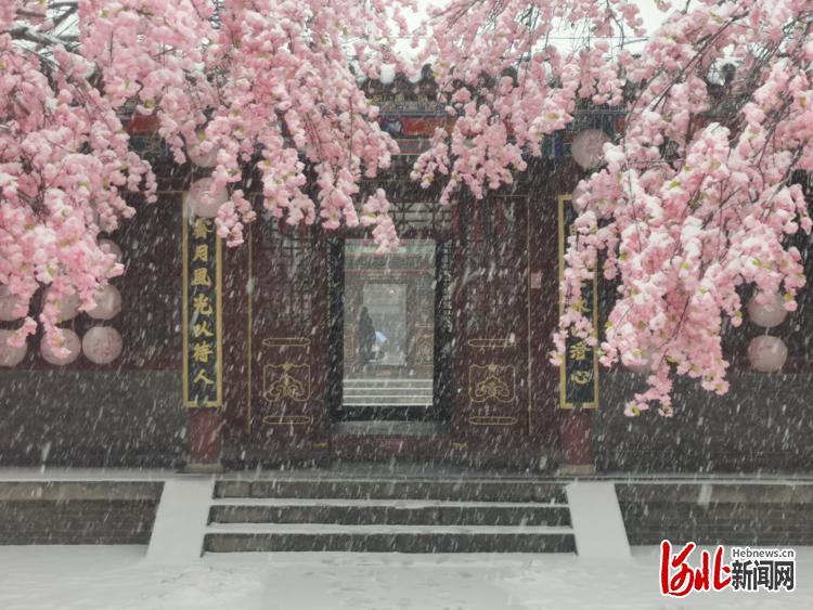 【20日16时26分】石家庄大雪,荣国府内出现雪落“海棠”的粉色梦幻场景