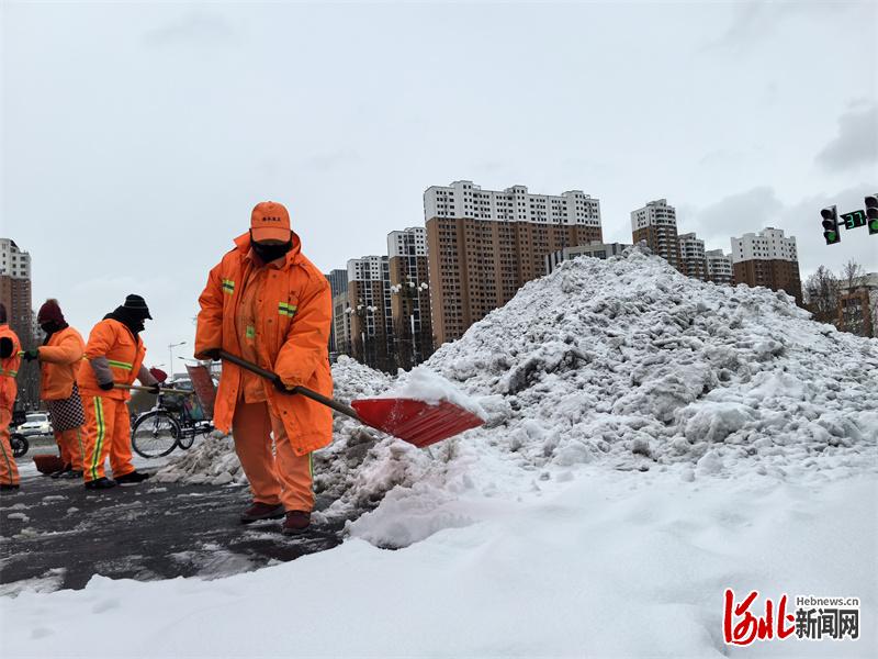 图为唐山市城管部门工作人员积极清除路面积雪。