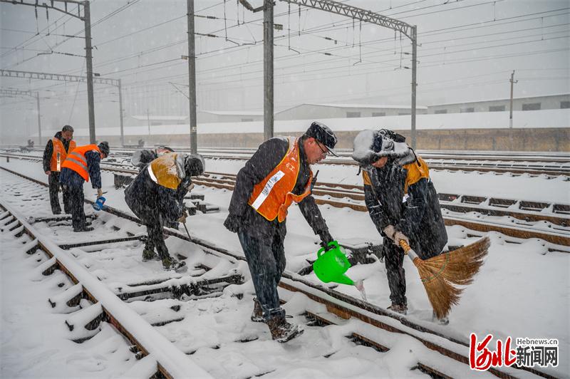 【20日15时50分】清除道岔线路积雪,保障铁路安全畅通