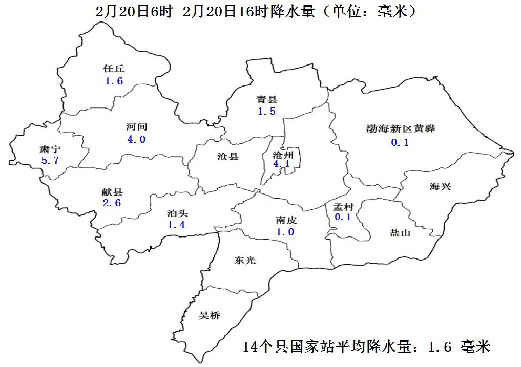 【20日16时许】沧州市气象台2月20日16时发布雪情