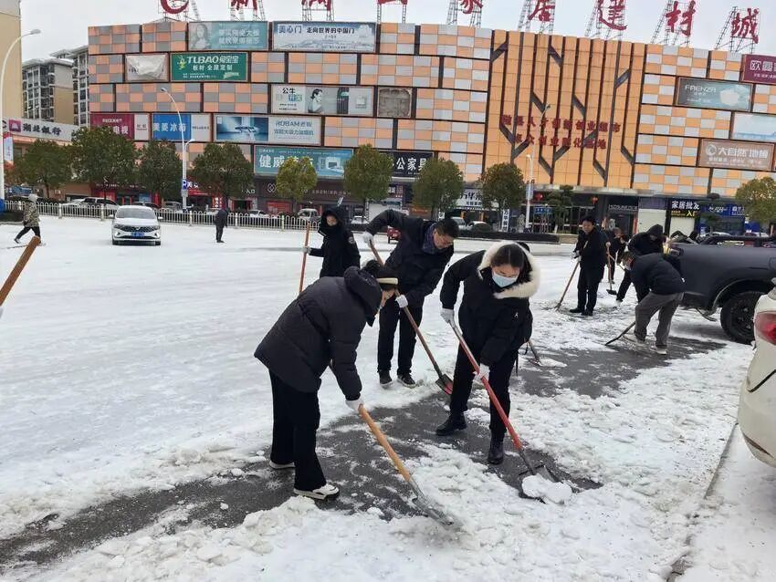随县道路水路运输事业发展中心组织党员干部在新厉山小区积极参加扫雪除冰志愿行动。