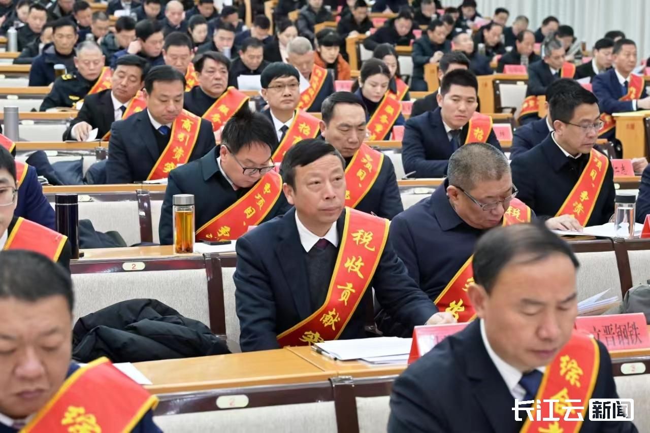 会议现场,2023年税收过千万元的企业负责人,在枣阳市改革发展主战场、项目建设第一线、急难险重最前沿作出突出贡献的单位代表和先进个人坐在前排,接受表彰和嘉奖。