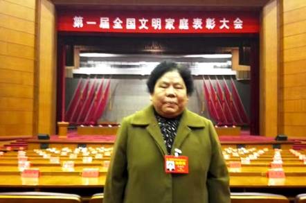 这位老人名叫余洪芝,是来自湖北武汉的文明家庭代表。