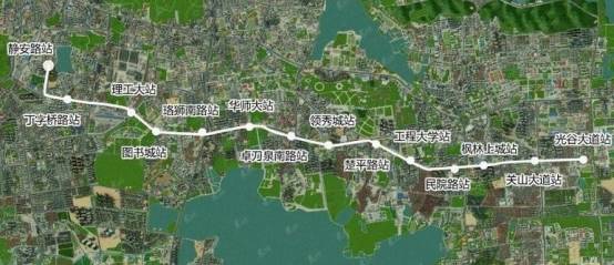 雄楚大道BRT西起武昌火车站,经福安街、静安路、雄楚大街、佳园路至流芳火车站,全长11.6公里。沿线设站14对28个,其中城投段(武昌火车站至虎泉街)9对站,光投段(虎泉街至光谷火车站)5对站。