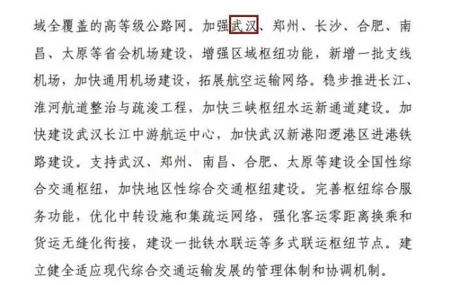 1、支持武汉、郑州、南昌、合肥、太原等,建设全国性综合交通枢纽。