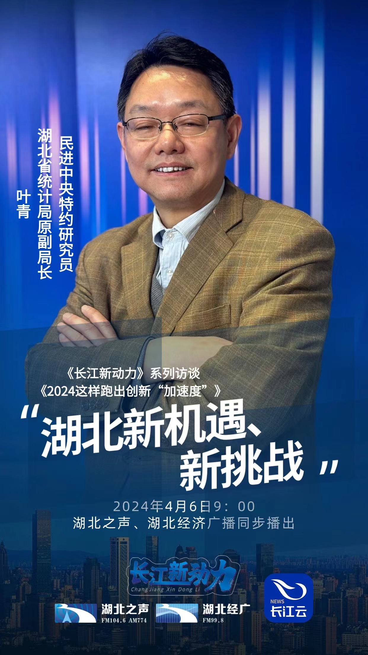 2024年,全国两会确定了“稳中求进、以进促稳、先立后破”的经济工作总基调。今年国内生产总值增长目标为5%左右,湖北定下的地区生产总值增长目标为6%。站在新起点,科技创新这个最大增量将如何为产业、行业赋能?系列访谈《2024 这样跑出创新“加速度”》,邀请经济专家、各行业专家聚焦2024年湖北经济趋势。第一篇,《长江新动力》主持人齐鸣对话民进中央特约研究员、湖北省统计局原副局长叶青,解读 2024的湖北的新机遇、新挑战。