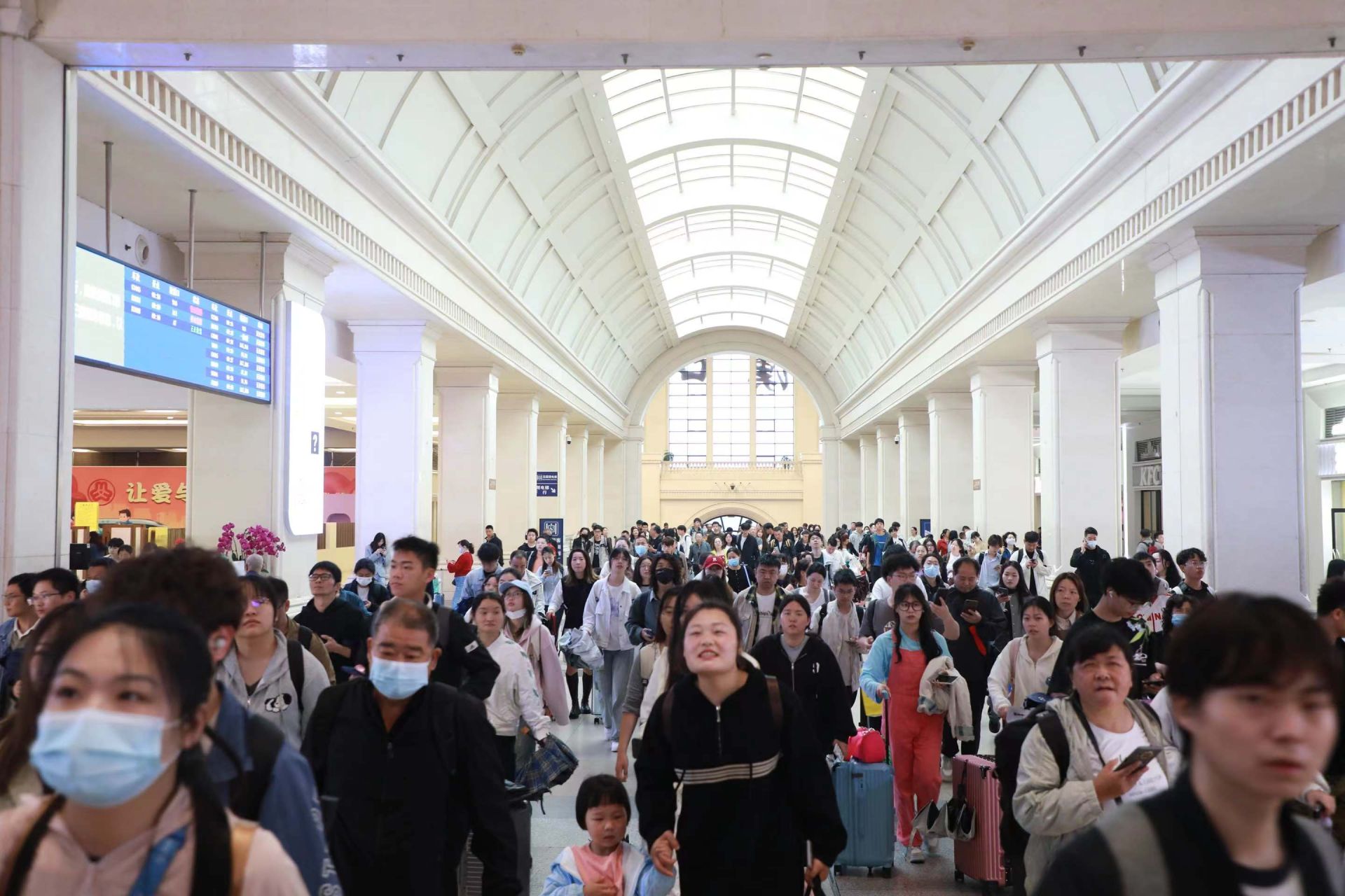 记者从中国铁路武汉局集团公司了解到,4月29日,“五一”假期铁路运输正式启动,今天(30日)下午,铁路将迎来出行客流高峰,当天预计发送旅客90万人次,是日常的两倍,其中武汉、汉口、武昌三大站共将发送旅客40万人次。