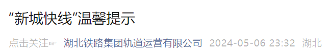 湖北铁路集团轨道运营有限公司微信公众号 2024-05-07 09:41:56