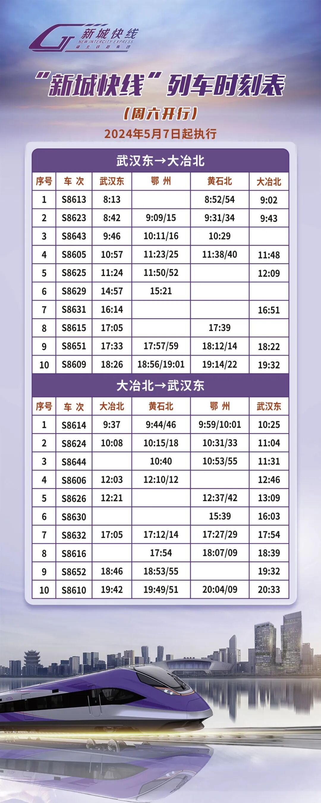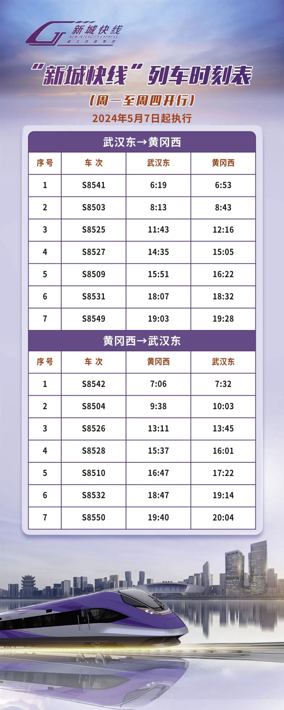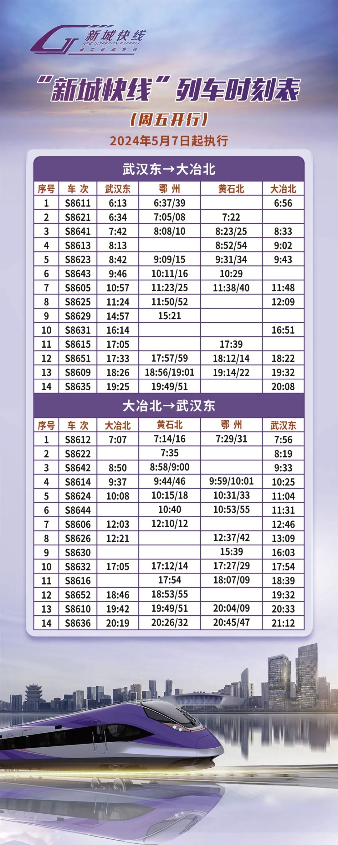 本次调整后的新列车时刻表分为周一至周四、周五、周六、周日4种。请大家出行前及时查看支付宝、微信“新城快线乘车码”小程序中的最新列车时刻表,提前规划行程。“新城快线”将根据客流需求不断优化调整运营方案。