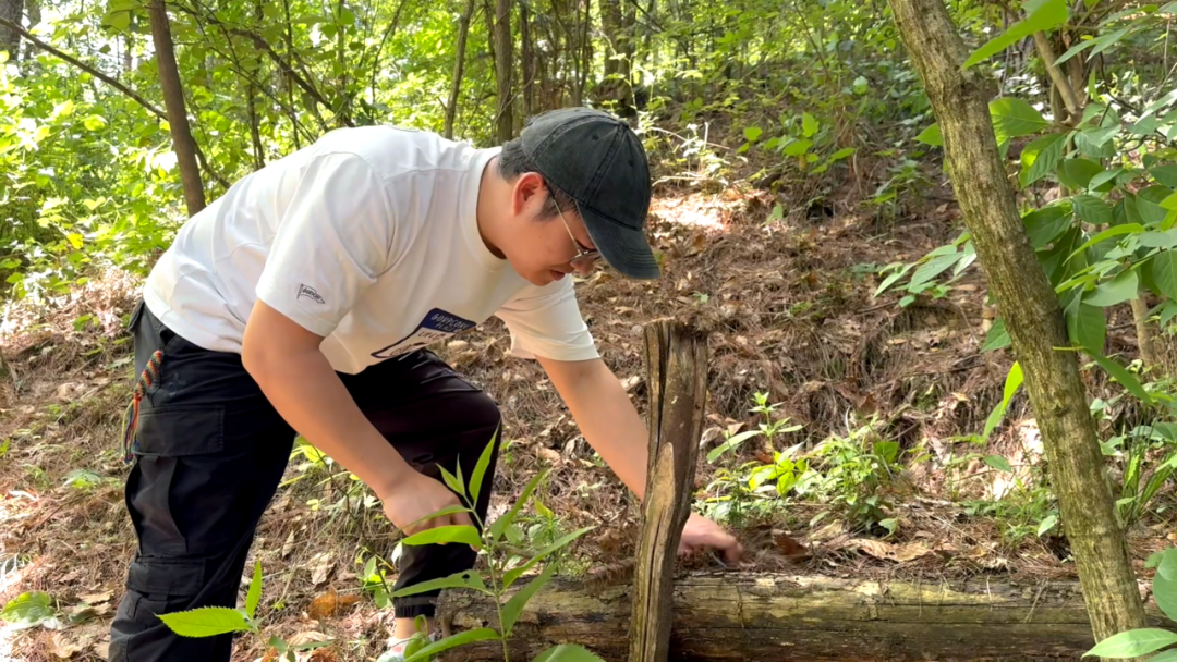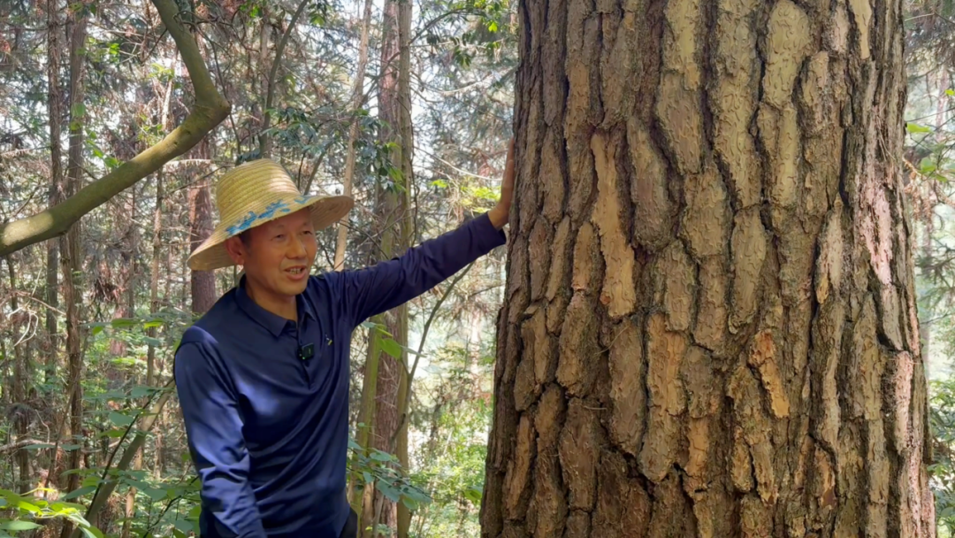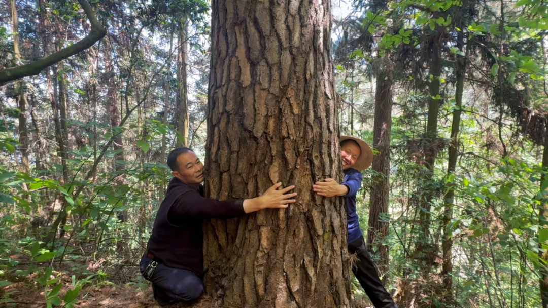 今年57岁的王卫春,连续4年担任村级林长,对这片马尾松林非常熟悉。其中,最大的一棵马尾松树高30余米,胸径达92厘米,估测树龄超过100年。这片马尾松林虽然保护得很好,但在2021年,差一点就遭遇了灭顶之灾。当年,就在这棵马尾松的上方,另一棵马尾松患上了松材线虫病。