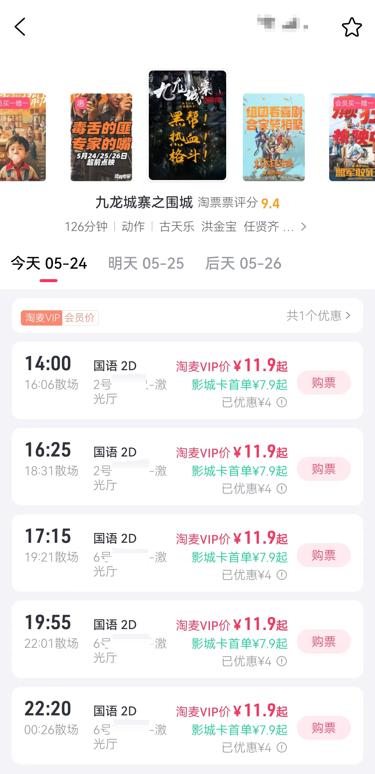 影院:有少量特惠票,需要抢