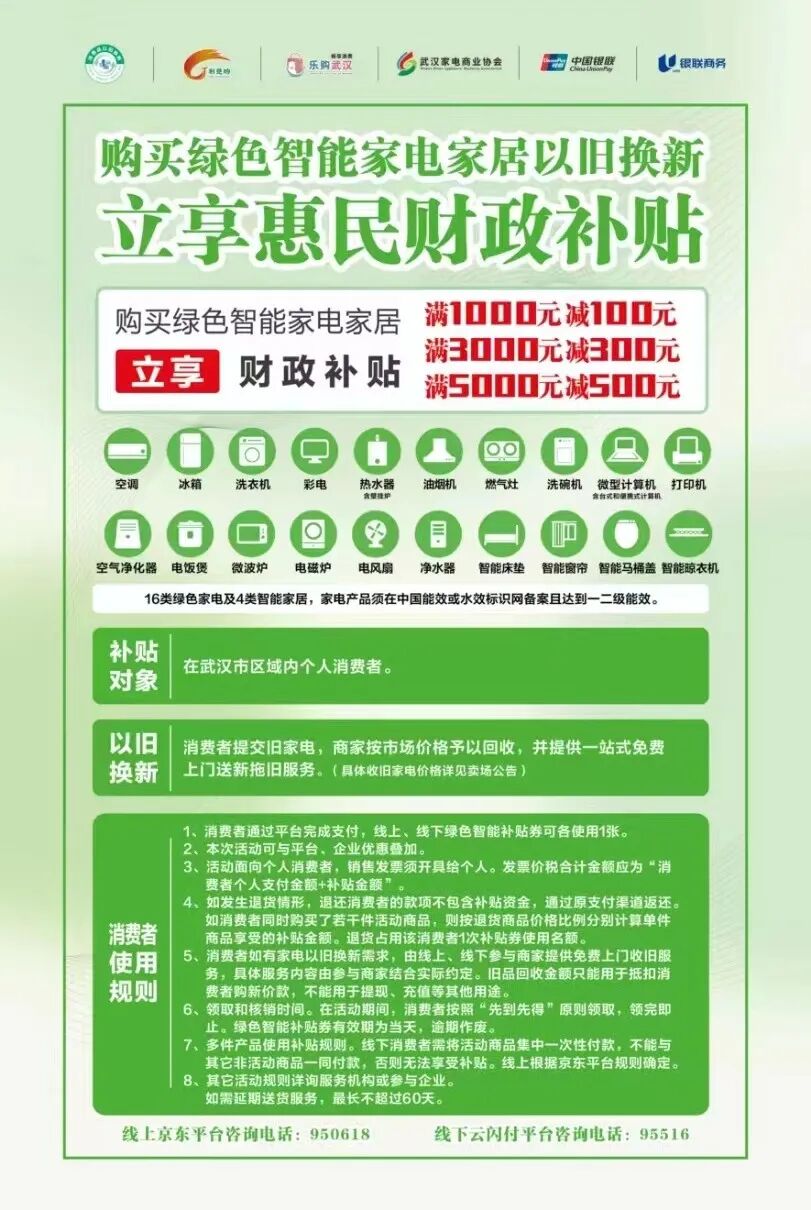 武汉家电“以旧换新”,新一轮补贴来了!