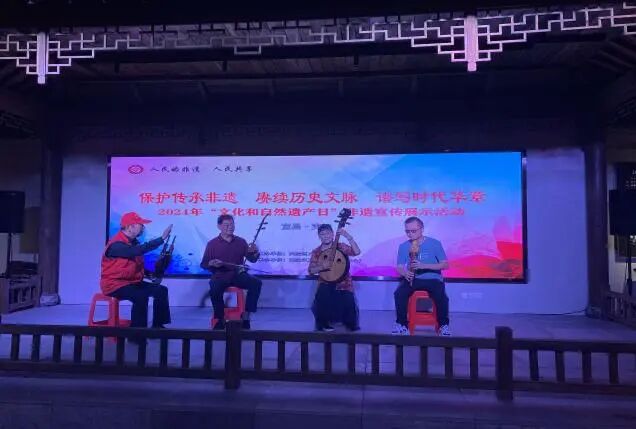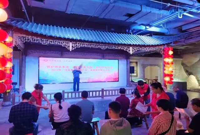 上午,在夷陵非遗展示馆,宜昌市夷陵区文化馆(非遗中心)的志愿者为前来参观的游客宣讲非遗法规、指导版画雕刻、传授宜昌丝竹演奏技法等。