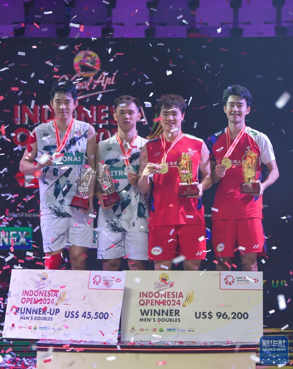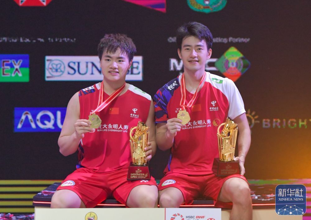 6月9日,在雅加达举行的2024年印度尼西亚羽毛球公开赛男双决赛中,中国组合梁伟铿/王昶2比1战胜马来西亚组合万炜聪/郑凯文,夺得冠军。