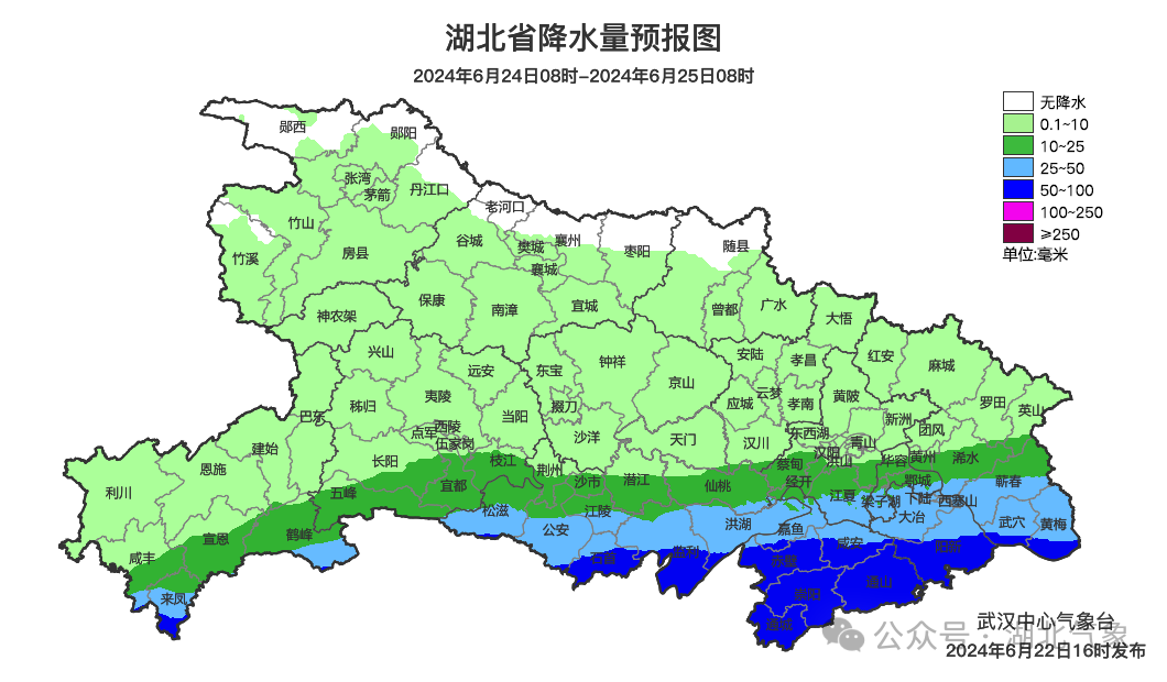 预报来源:武汉中心气象台2024年6月22日16时预报