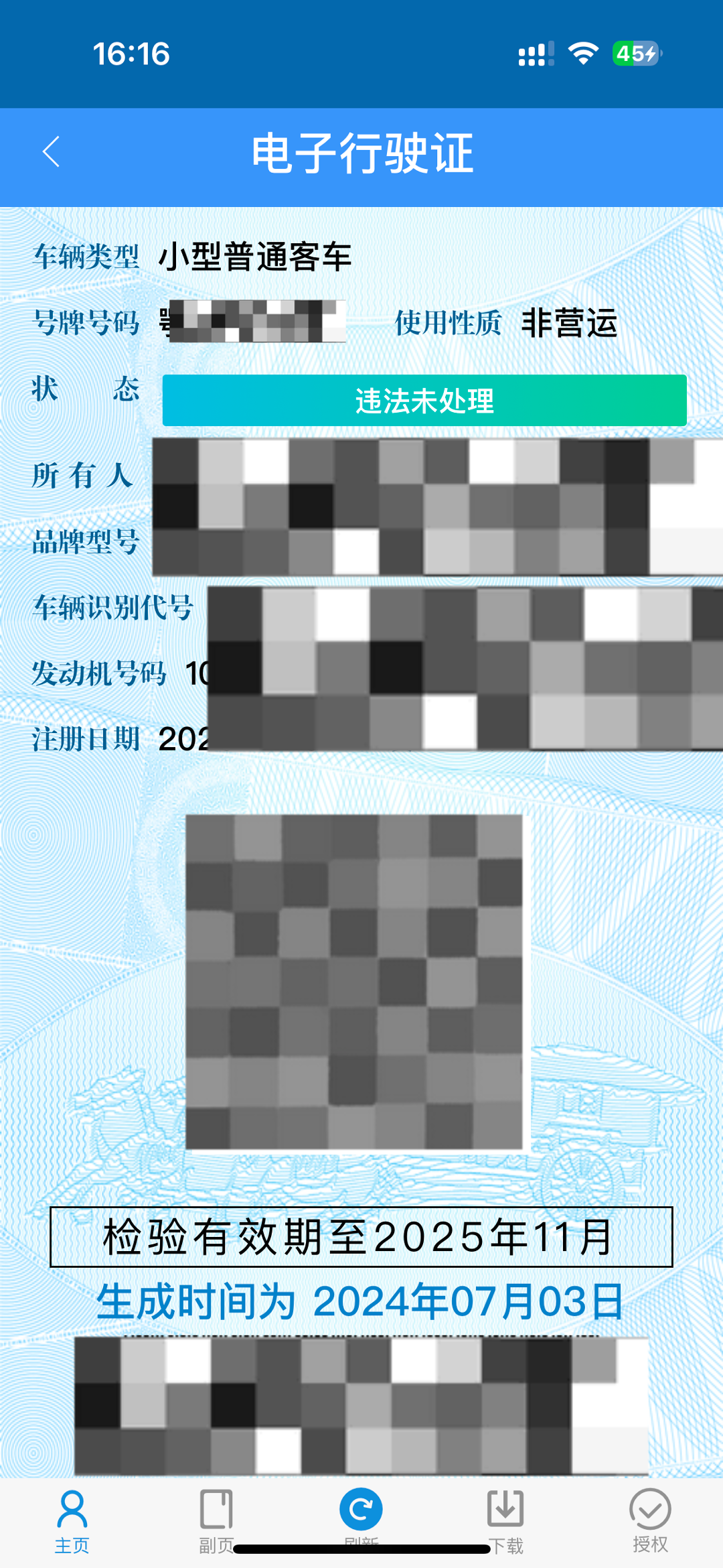 (生成的电子行驶证界面)