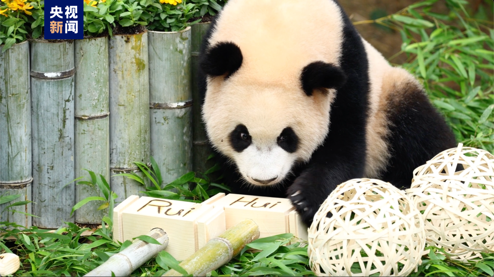 爱宝乐园熊猫世界的饲养员们精心为“睿宝”和“辉宝”准备了木制汽车和由竹子、窝头、胡萝卜和鲜花制成的大型蛋糕,与被特别邀请到现场的幸运粉丝和线上观看直播的观众一起为它们唱生日歌。