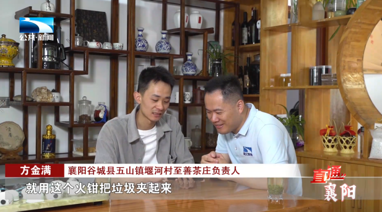 襄阳谷城县五山镇堰河村至善茶庄负责人 方金满:“拿的就是火钳,就用这个火钳把垃圾夹起来放篮子里面,每个星期五的下午最后一堂课,就去搞这个活动,做这个事情我们都笑得非常开心。”